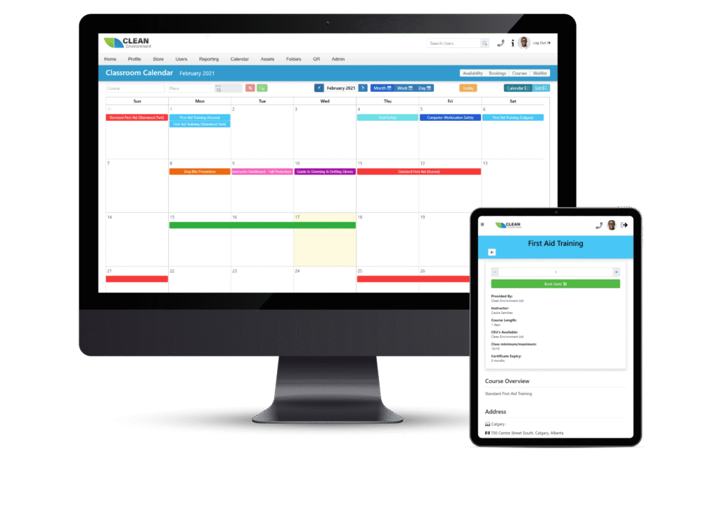 Managing classroom training is simple with our integrated online Classroom Calendar. Whether you want to train your employees, customers, contractors, or management team, the advanced classroom booking calendar allows you to create training events, reserve classrooms, assign instructors, and enroll participants while effectively managing all the details such as payments, minimum and maximum enrollment, wait lists, course materials, and more.