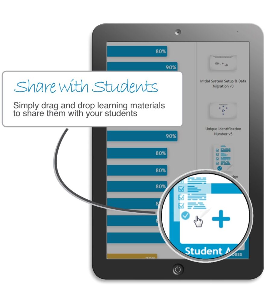 Allow instructors to drag and drop course assets from their dashboard to the main screen, instantly playing videos and PowerPoints for the students on their tablets.